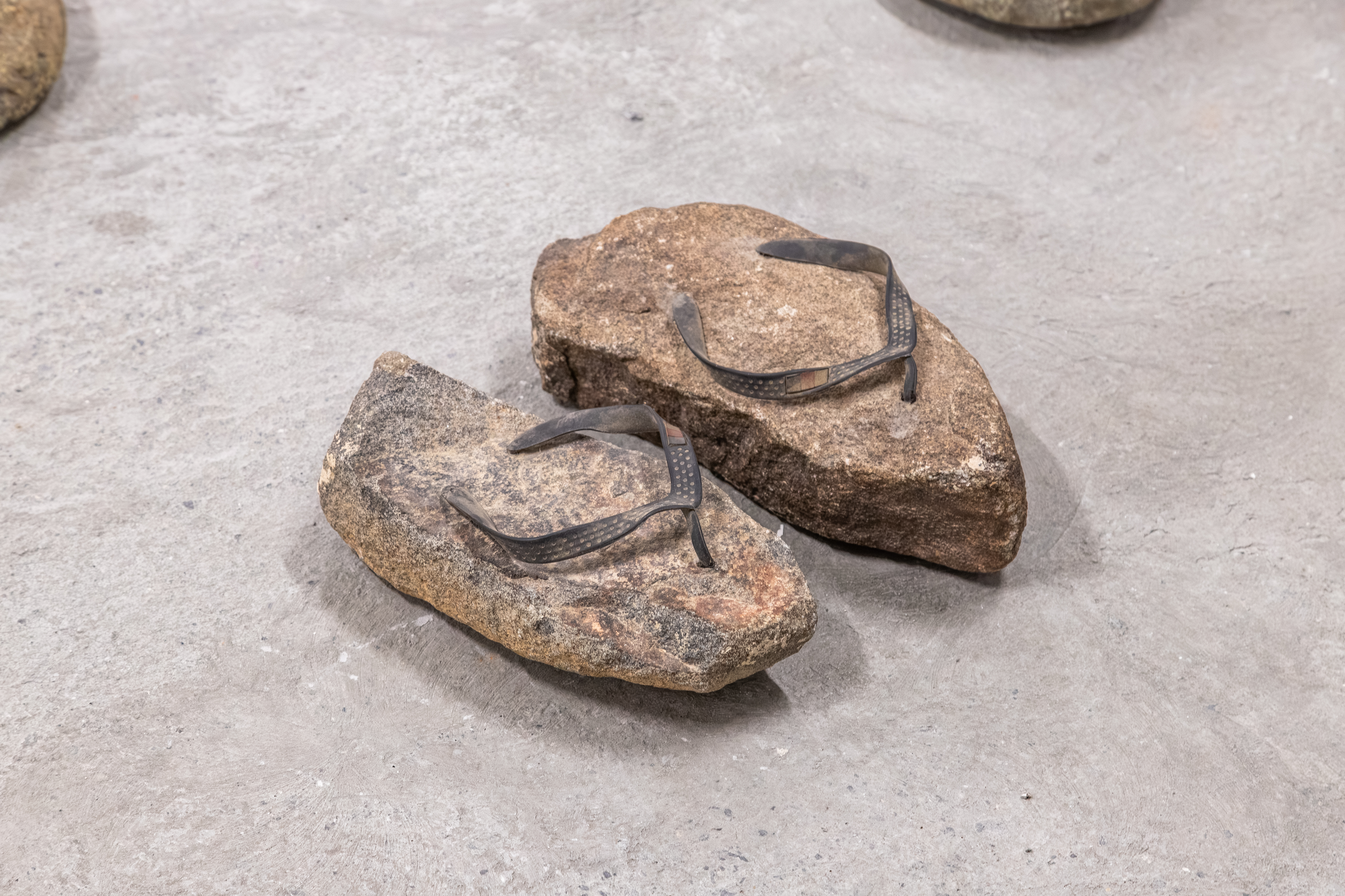 İlk tercihim Tophane’de İstanbul Modern’in karşısına düşen Zihni Han. Girişinde camdan görünen ve can alıcı renkleriyle sizi hemen içeri davet eden sergi Arjantinli sanatçı Celina Eceiza’ya ait. Girişe sevimli kedi evleri yerleştiren Eceiza, bulunduğu mekânı birbirine eklediği kumaşlarla, yastıklarla giydiren bir sanatçı. İkinci katta bu hayal âleminden çıkıp Bosna Hersekli Roman sanatçı Selma Selman’ın, Tayvanlı Chen Ching-Yuan’ın acı gerçekler dünyasıyla karşılaşıyorsunuz. Selman’ın ailesi Hindistan gibi ülkelerde yapıldığı sanılan elektronik atıklardan kıymetli madenleri çıkarmakla uğraşıyor. Bir yanda bir bilgisayar yığını, diğer yanda cam bir kutunun içinde bunlardan çıkan altınla yapılan bir altın kaşığı görüyorsunuz. Ching Yuan’ın direnişi simgeleyen tuğla blokları, gerçeküstü bir atmosferde emeğe işaret eden tabloları dikkat çekici. Beşinci katta Gazzeli sanatçı Sohail Salem’in Filistinli Mültecilere Yardım Ajansı tarafından dağıtılan defterle mavi mürekkeple yaptığı eskizler ‘Filistin Günlükleri’ o topraklarda yaşanan trajediyi tanığından bizlere aktarıyor. İnsanı sarsan güçlü işler… Buna karşın Elif Saydam’ın, perdeyi andıran şeffaf, neşeli levhalar yerleştirmesi ‘Misafirperverlik’ izleyiciyi sıcak bir şekilde karşılıyor. Körfez Bölgesi’nde kavramsal sanata öncülük eden Abdullah Al Saadi’nin taştan imal ettiği parmak arası terlikleri anlamlı.