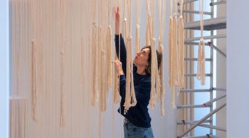Defne Tesal’ın ilk kişisel sergisi Galerist’te: ‘Nereye Düşeceğimi Bilmiyorum!’ Tesal, sergisinin içeriğini yaklaşık bir yıl önce tam olarak nereye düşeceği bilinmeyen 1970’lerin bir Sovyet uzay aracının belirlediğini söylüyor.
